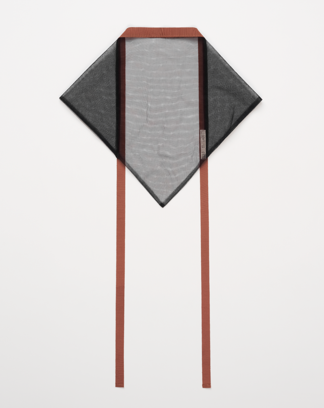 Soft nylon tulle tied together by a 1950s burnt Sienna rust grosgrain of silk & cotton.